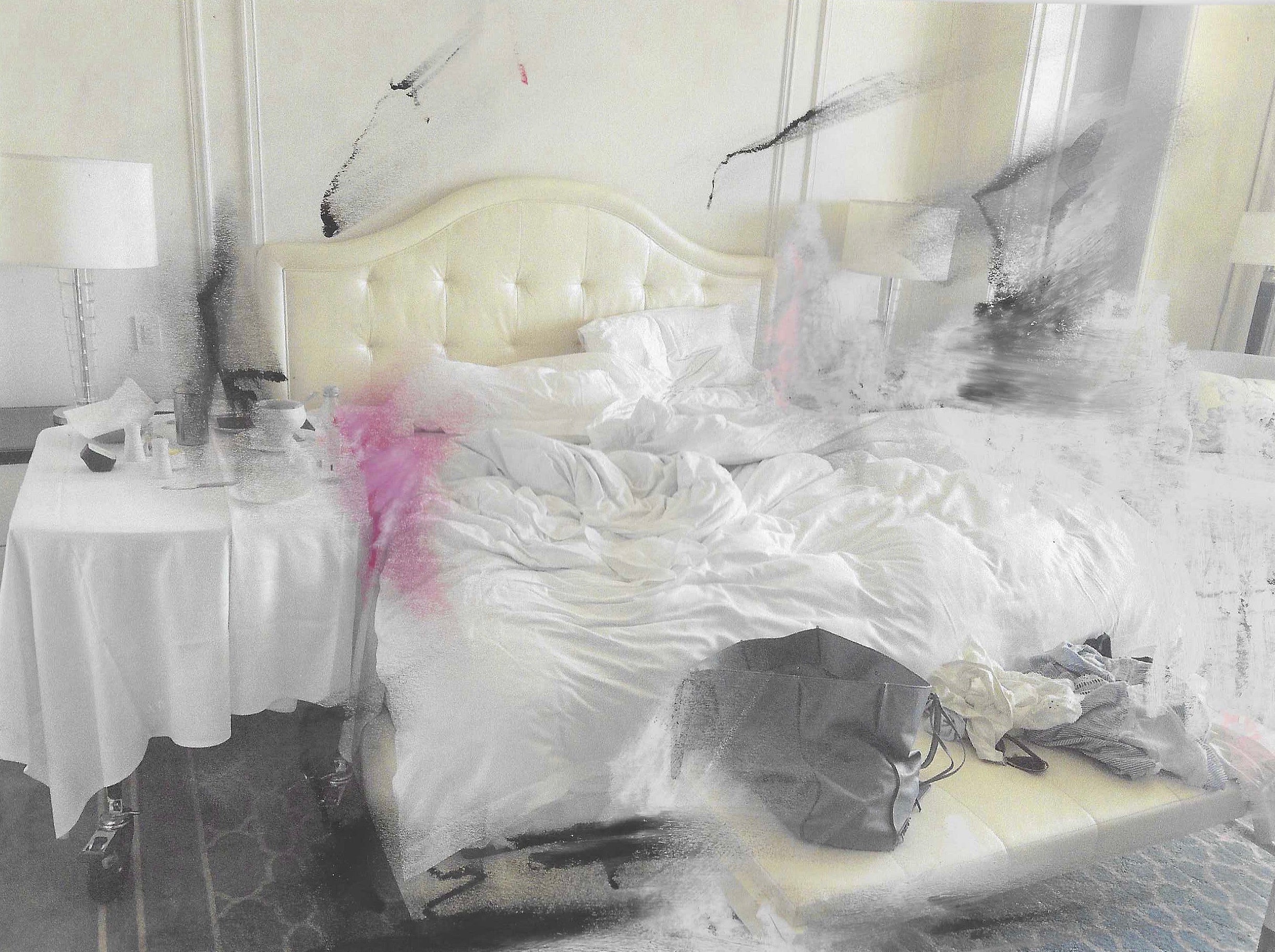 In the artist’s own words; "This work is an oil pastel drawing on top of a printed photograph, this is usually the first step in my process of turning the image into a ceramic photo-painting through image transfer. I make and collect these drawings similarly to keeping a diary/ journal entry. I print images from my phone and alter / adapt them into a kind of fever dream- an unreal or sublime state of dissociation that hangs on the image.