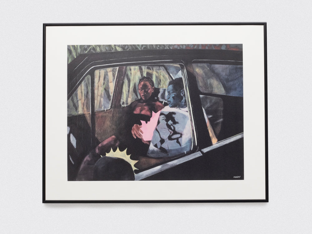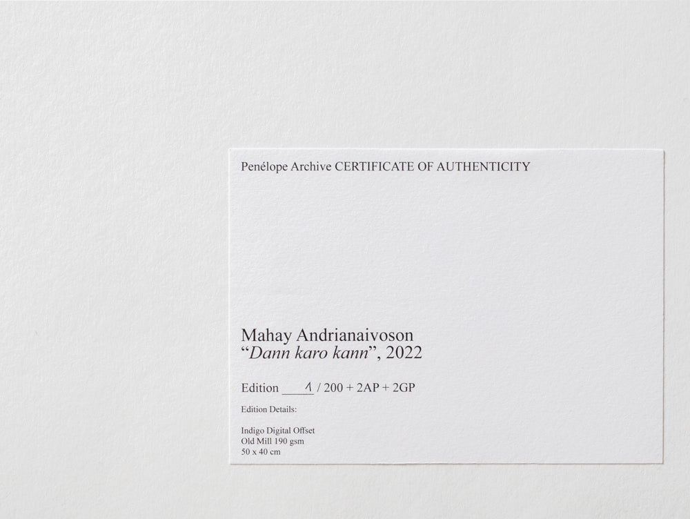 Translating to "In the Sugarcane Field" in Reunionese Creole, “Dann karo kann” captures the essence of Reunion Island’s cultural and historical landscape. Evoking romantic rendezvous amidst sugarcane fields, emblematic of the island’s collective imagery. Beyond mere romanticism, the artwork delves into the island’s colonial past and economic reliance on sugarcane. The island’s history is deeply entwined with the legacy of slavery, with a significant portion of enslaved individuals originating from Madagascar, forging a cultural connection that resonates to this day. Indeed, “Dann karo kann” serves as an honest depiction of the island’s identity, where tales of love and the legacy of colonialism intersect amidst the sugarcane fields.”