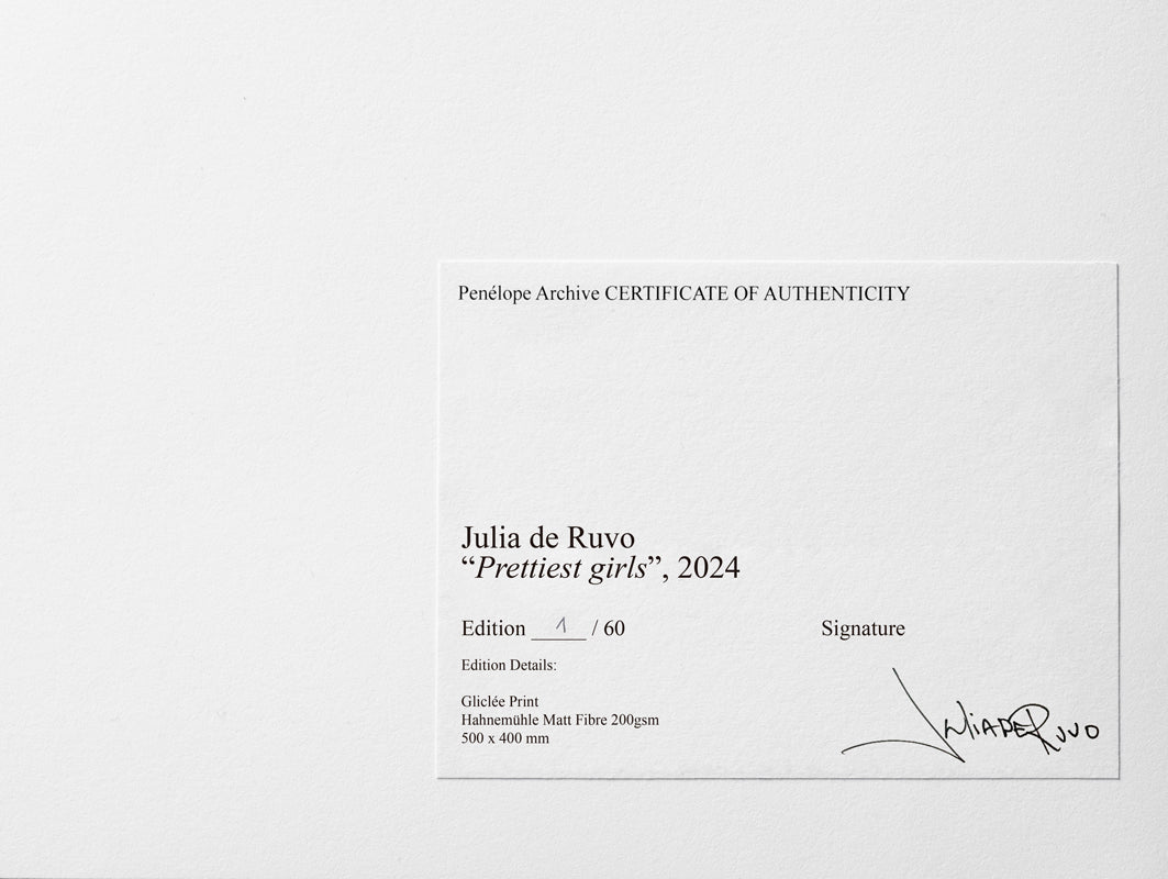 Born in Sweden in 1993, Julia de Ruvo is a visual artist specializing in acrylic painting on canvas. Having graduated from the Konstskolan Art School in Stockholm, de Ruvo’s figurative painting style incorporates smokey hues, certain exaggerated features and softly blended contours to capture human emotion and everyday moments with a humorous tone.